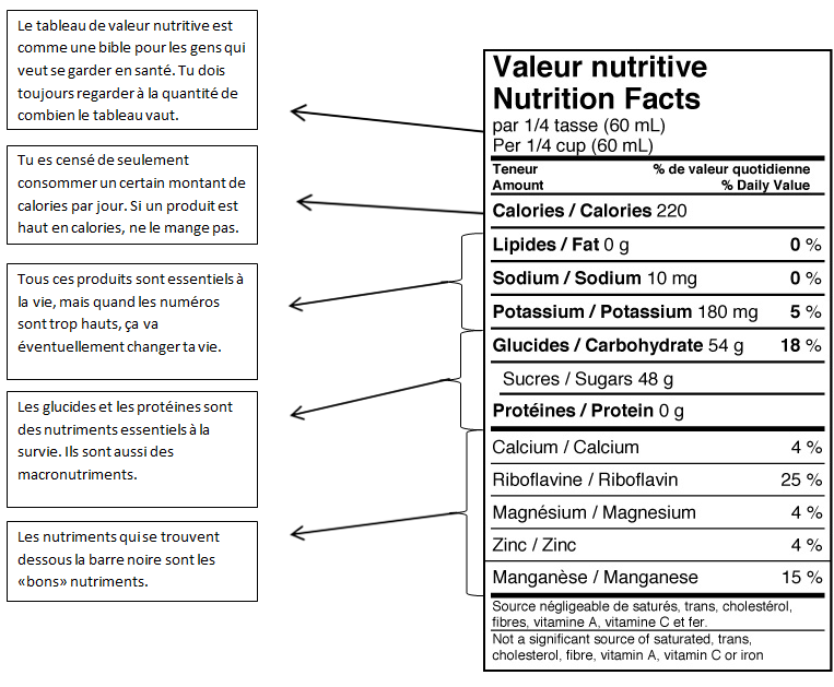 b. Expliquer comment interpréter le tableau de la valeur nutritionnelle, la liste des ingrédients et les allégations (nutritionnelles et santé) pour faire de meilleurs choix
